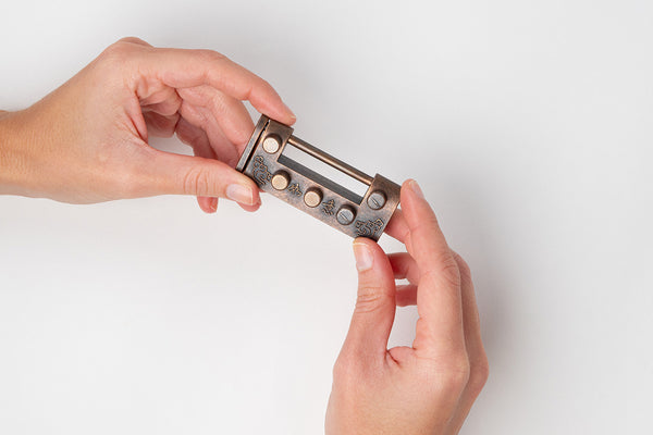 Un véritable cadenas en bronze d'alchimiste.