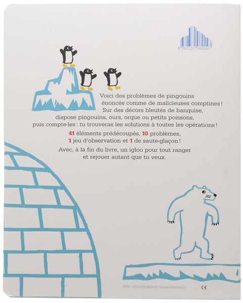 Des p'tits pingouins, une orque, un ours, des poissons, un canoé et une motoneige… plus de 40 éléments prédécoupés, des décors, des jeux et 10 minis-problèmes hyper rigolos pour apprendre à ajouter, retrancher ou encore multiplier.